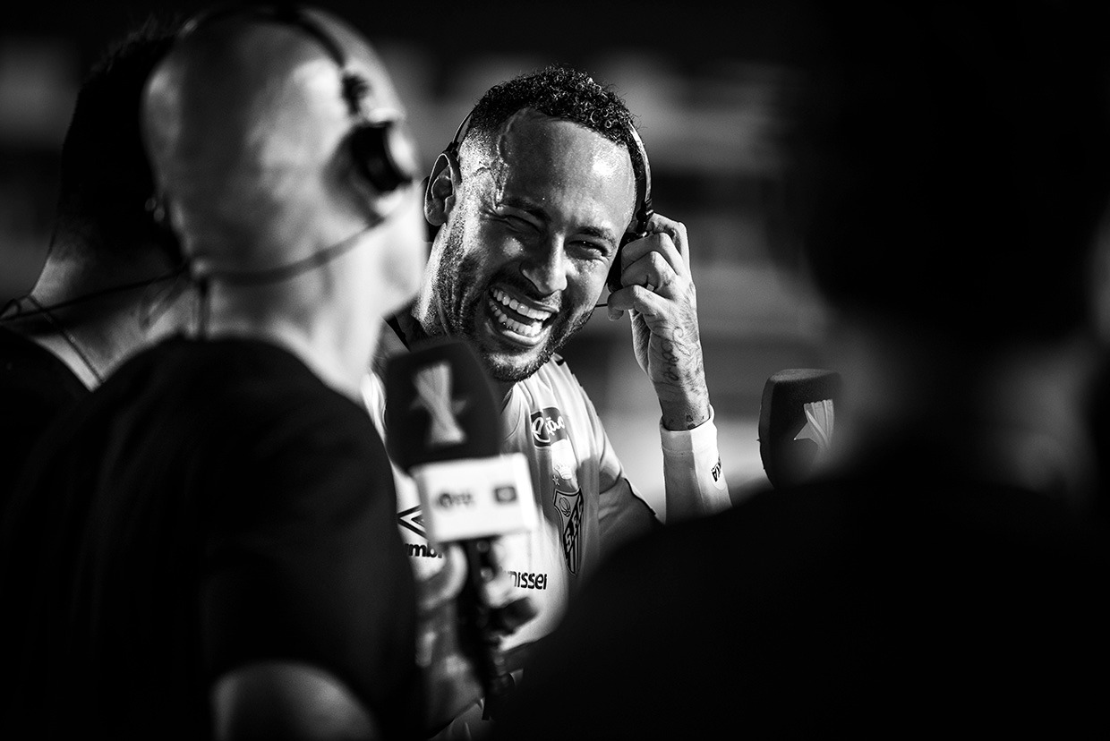 Na foto, um recorte da cena surreal: fãs e profissionais da imprensa se aglomeram, buscando um espaço para ver de perto o astro que retorna. O jogo ainda nem começou, e Neymar já domina o espetáculo. Cada passe, cada toque, cada expressão sua se torna matéria de discussão, gerando repercussão global e trazendo um holofote internacional para o futebol nacional.